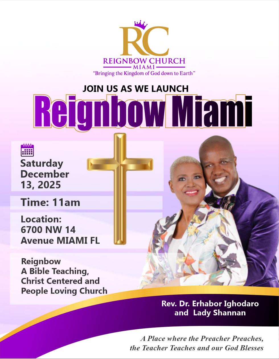 November 1, 2025 marks the launch of Reignbow Miami — and you are invited! Join Rev. Dr. Erhabor Ighodaro and Lady Shannan as we begin this exciting new chapter together.